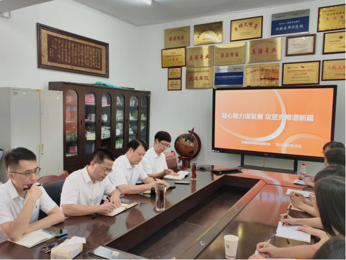 本网讯(文、图/刘紫英)9月25日下午,日语专业召开2025年秋季学期专业建设与学科建设专题研讨会。外国语学院党委书记袁明锋,院长江世勇,副院长陈开富、副院长王林及日语专业全体教师齐聚一堂,为新学期工作谋篇布局,共商2025年秋季学期专业建设和学科建设大计。会议由日语专业负责人刘紫英主持。