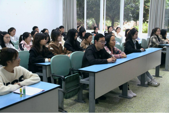 宣讲环节中,乐师红帆宣讲团成员胡芯宇同学以《文旅融合强省路奋楫扬帆兴乐山——学习贯彻2025年省市全会精神》为题作专题授课。她结合影像资料与典型案例,从“擘画蓝图·使命引领”“融合路径·战略部署”“乐山实践·兴市有为”“青春担当·聚力同行”四个维度,系统解读了省委十二届七次全会与市委八届十一次全会关于推进文旅深度融合的核心要义与战略举措。胡芯宇在宣讲中强调,广大青年要自觉践行“党有号召、团有行动”,主动将个人成长融入“文旅兴市”发展大局,以专业知识服务文旅融合,以青春智慧讲好乐山故事,在理论学习中坚定文化自信,在实践服务中展现先锋作为。授课过程中,同学们认真聆听、积极互动。(审核:陈盈舟)
