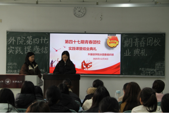 本网讯(文/苏钦 图/谌诗颖、马佳薇、熊娜)为深植红色基因、检验团校育人实效,12月4日,外国语学院第四十七期青春团校实践课暨结业典礼在行知楼209顺利举行。外国语学院37名同学到场参与。实践课暨结业典礼由外国语学院分团委组织部干事况直辰进行主持。