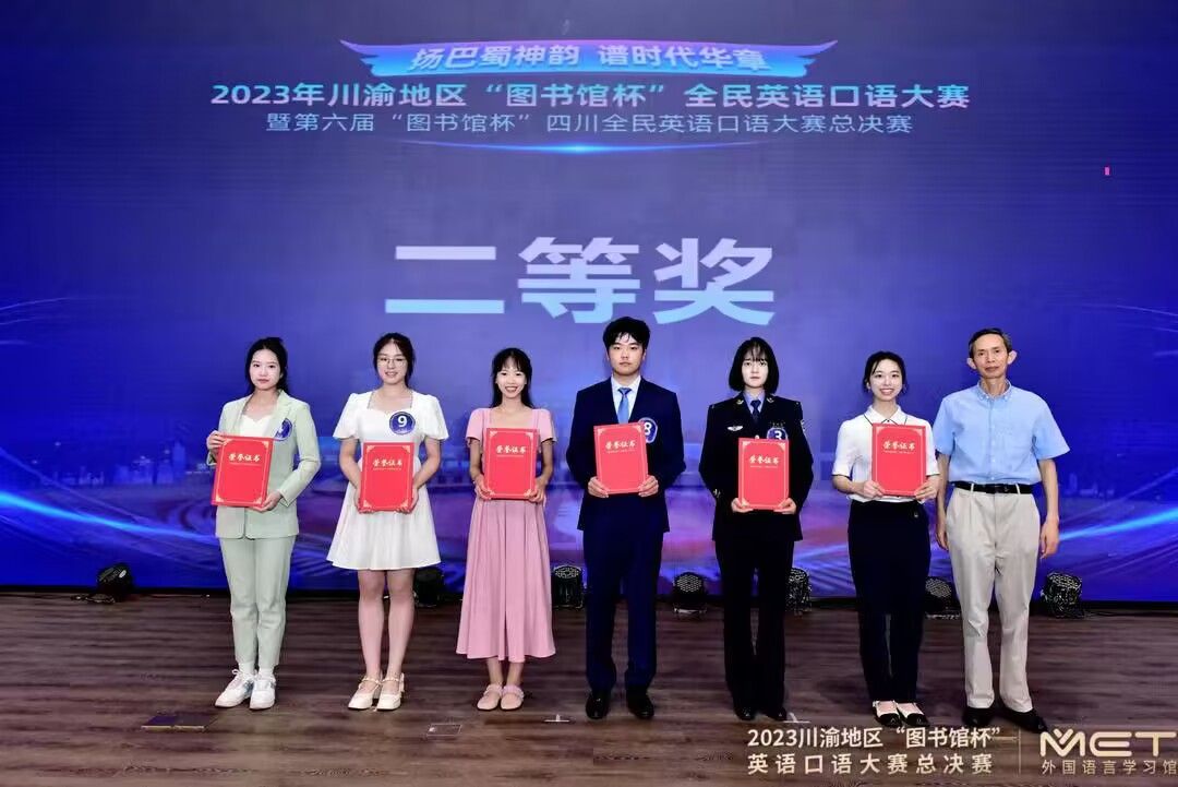 本网讯(文/图仇旻鸿)6月18日,2023年川渝地区“图书馆杯”全民英语口语大赛暨第六届“图书馆杯”四川全民英语口语大赛现场总决赛在成都天府人文图书馆举行。外国语学院翻译专业2022级学生仇旻鸿在王林老师和李洋华老师的指导下荣获二等奖。