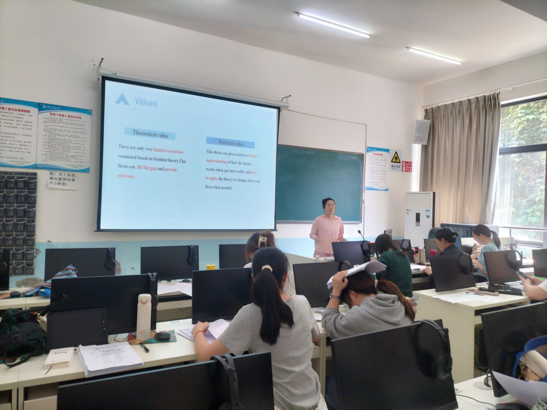 (文/图 景爱民)4月11日下午,外国语学院2024届英语、翻译、商务英语以及法语专业毕业论文答辩在实训楼B区三楼举行。刘丽平教授、沈玉如教授、杨渊教授、廖百秋博士等20余位教师参与了本次答辩工作。