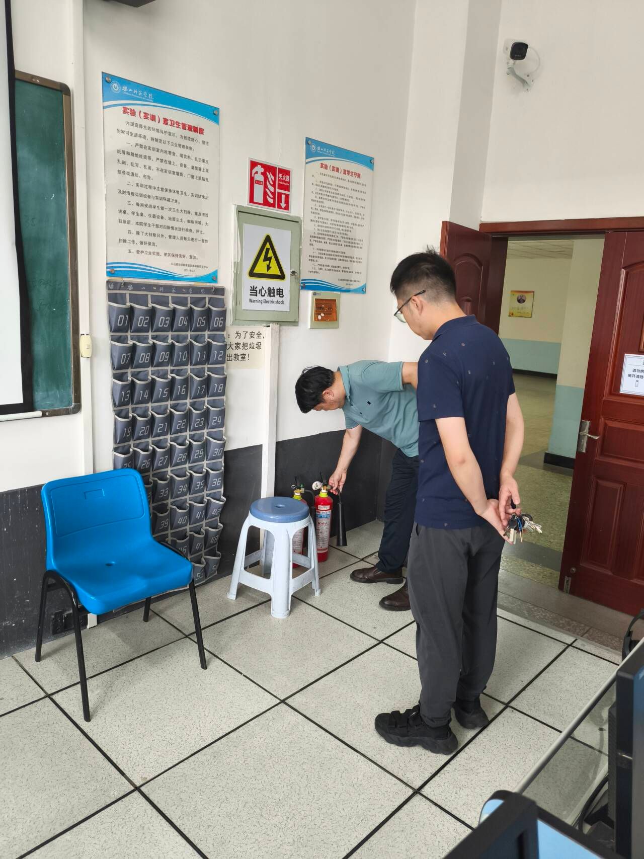本次检查严格按照实验室安全管理规定及设备维护标准,检查组对各实验室进行逐一排查,核心内容聚焦四大维度:1.电源线路安全:重点检查了实验室的电路、线路老化等情况,确保放假前电源全部关闭。2.设备运行:对语言实验室的计算机、投影仪等教学设备进行了功能检查及老化情况了解,确保设备运行正常满足教学需求。3.消防设施:仔细核查了各实验室的灭火器配置是否齐全、是否在有效期内、压力是否正常,确保消防设备随时可用。4.环境卫生:检查了实验室的整体卫生状况,包括地面清洁、桌面整理和设备表面除尘等,要求保持整洁有序的教学环境。