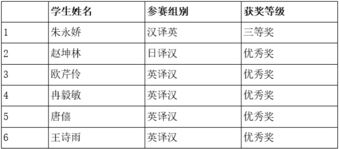 本网讯(文、图/张臻)10月20日,第三十七届韩素音国际翻译大赛获奖名单揭晓,我校外国语学院6名学生获得各组别奖项,在省内同级别院校中遥遥领先。获奖名单如下: