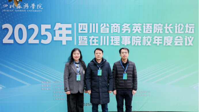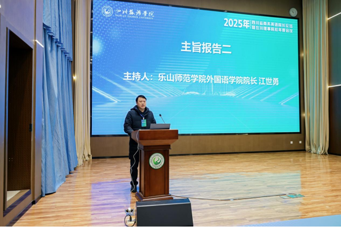 本网讯(文、图/陈析西)12月26日至27日,2025年四川省商务英语院长论坛暨在川理事院校年度会议在四川旅游学院隆重举行。本次会议由中国对外贸易合作企业协会国际商务与语言服务工作委员会主办,四川旅游学院承办,吸引了省内外50多名从事商务英语教学、研究与管理的专家、学者和一线教师参会。我校外国语学院院长江世勇、副院长王林、应用英语系主任陈析西参会。