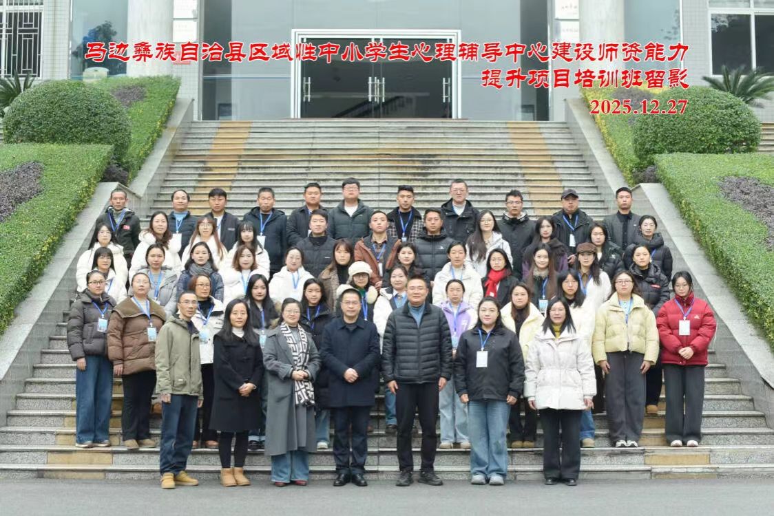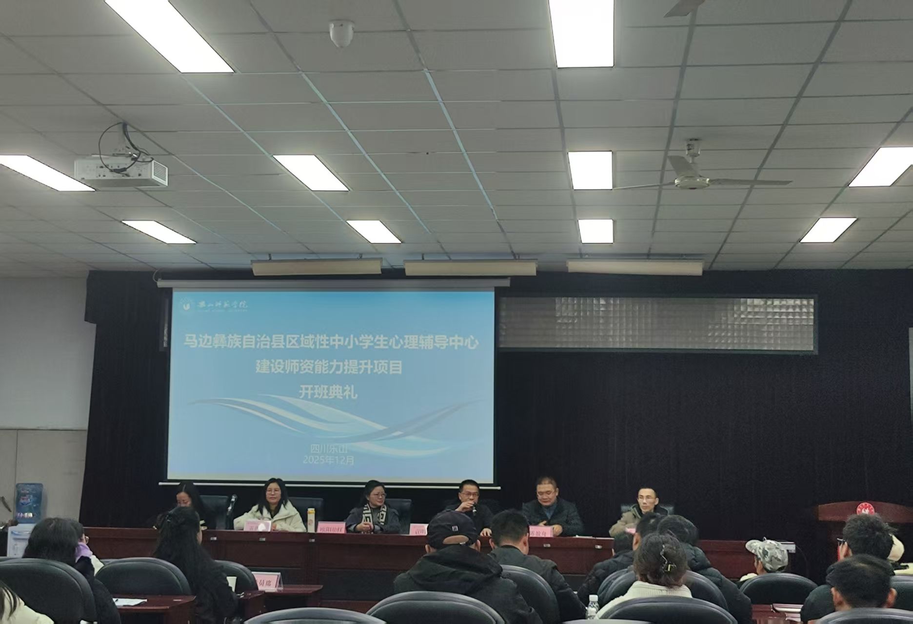 本网讯(文、图/曹琳、程渝洁、刘欢)12月27日上午,马边彝族自治县区域性中小学生心理辅导中心建设师资能力提升项目开班仪式在乐山师范学院弘毅楼413室举行。本次培训由乐山师范学院统筹组织、外国语学院具体承办。外国语学院党委书记袁明锋、夹江二中高级教师暨中科院心理咨询师欧阳颉红、学院党政办公室主任雷洪敏、教务与科研管理办公室主任代勇才、学工办副主任曹琳,以及全体参训学员出席仪式。仪式由外国语学院副书记陈盈舟主持。