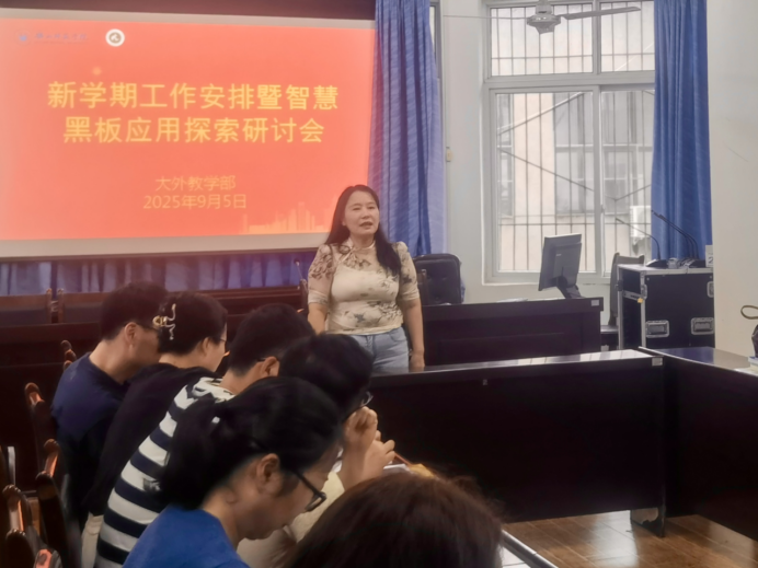 最后,谢丽莎强调,全体大外教师要以高度的责任感投入到新学期工作,以掌握智慧黑板使用为新起点,将数智赋能落实到具体教学环节中,聚焦学生外语核心素养提升,不断创新教学方法,齐心协力推动大学外语教学工作再上新台阶。同时,谢丽莎提出了下次教研会的主题“大学外语如何助力考研英语”并鼓励老师们积极思考,建言献策。