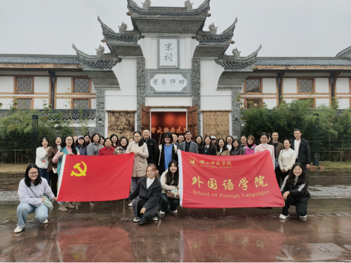 本网讯(文/胡蝶 图/胡蝶 雷洪敏刘艺秋)为弘扬爱国主义精神,传承中华文化根脉,11月6日,外国语学院党委组织师生党员前往乐山故宫文物南迁陈列馆,开展“文脉薪火传,赤心护国魂”主题党日活动,通过实地探访抗战时期故宫文物南迁的历史记忆地,引导师生党员感悟先辈们在战火中守护中华文明火种的坚韧与担当。